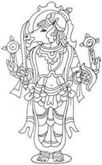 in itself. Kalki carries a sword with which he strikes down all evil and
